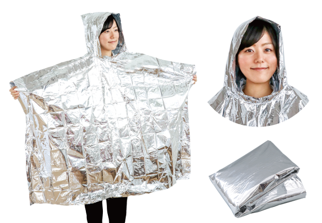 ■商品サイズ/1000×1200mm ■材質/防寒ポンチョ:CPP、非常用アルミ防寒ポンチョ:PET