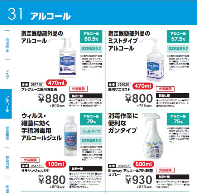 衛生用品防災用品カタログVOL.2「26アルコール」