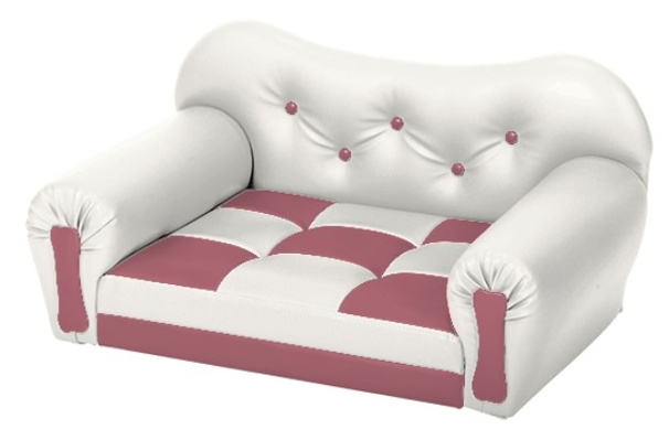 背もたれのハートの曲線とガラスボタンが印象的な ペットソファ。